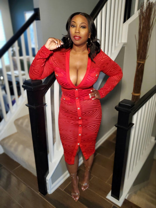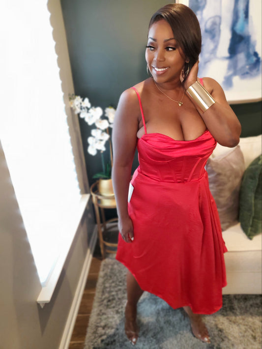 Scarlet Elegance Pleated Midi Dress | Review Description & Return Policy Prior To Purchase