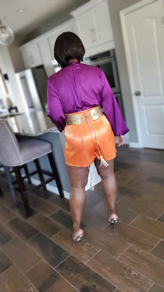 Purple Haze Romper with Gold Belt - Limited Stock (Curvy Sizes Only) | Review Description & Return Policy Prior To Purchase