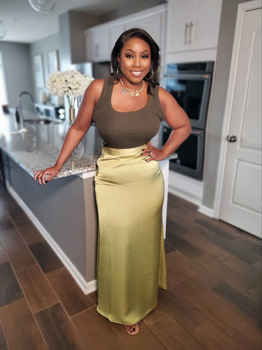Luxe Glow Satin Maxi Skirt | Review Description & Return Policy Prior To Purchase