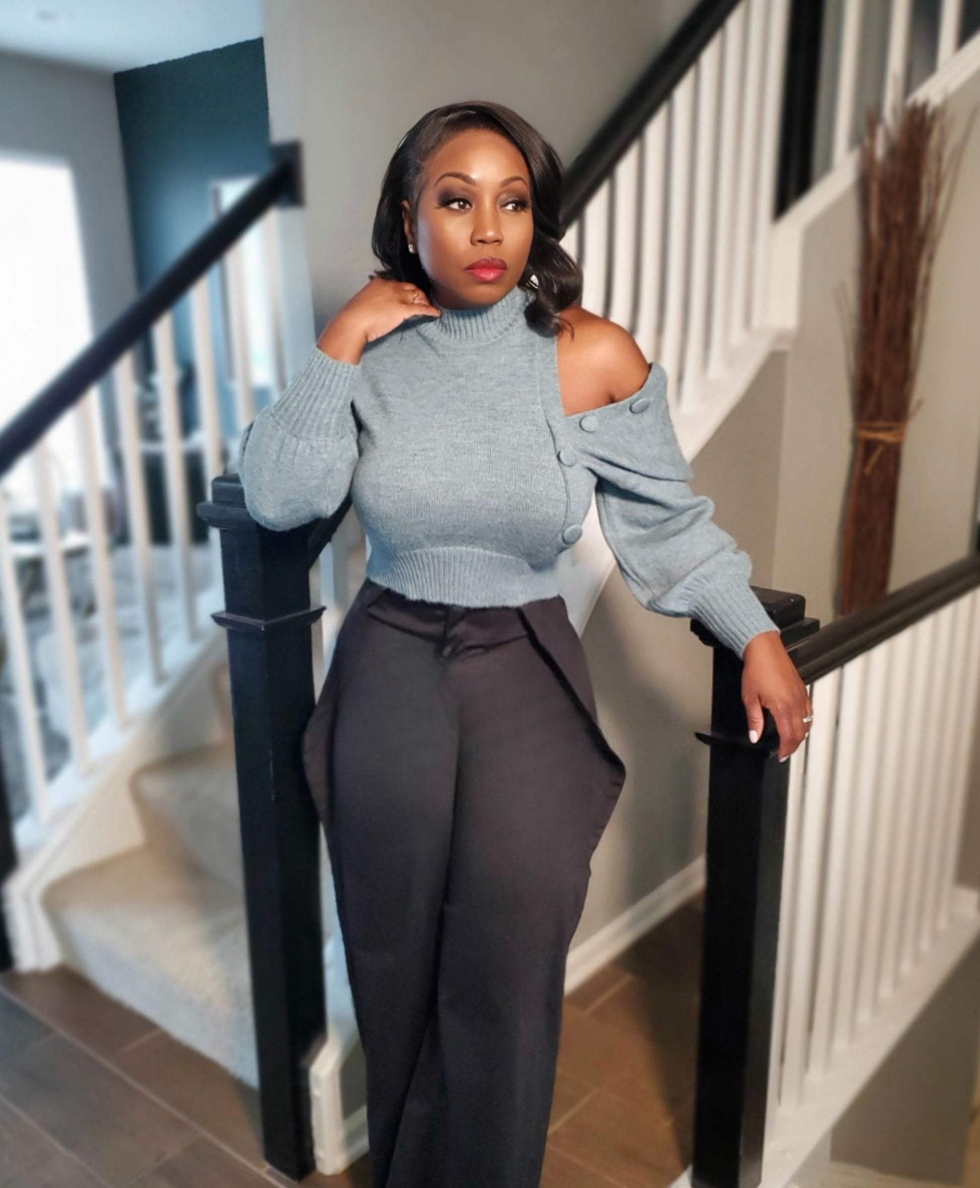 Add a modern twist to your winter wardrobe with the Chic Buttoned Off-Shoulder Sweater. This stylish knit top features a high neckline with a trendy off-shoulder design, accented by functional button detailing on the sleeve for added flair. Crafted for comfort and elegance, the sweater pairs beautifully with high-waisted trousers, faux leather pants, or your favorite denim.