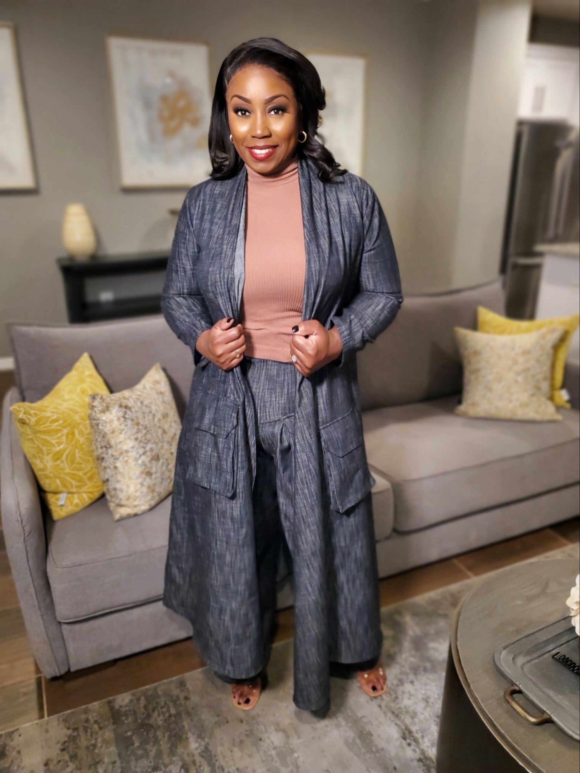 Upgrade your wardrobe with our Chic Faux Denim Two-Piece Set—where style meets ease! This ultra-soft, lightweight faux denim ensemble features a flowy longline jacket with oversized pockets and matching wide-leg pants with a flattering high waist. Perfect for casual days, travel, or a polished yet relaxed look.