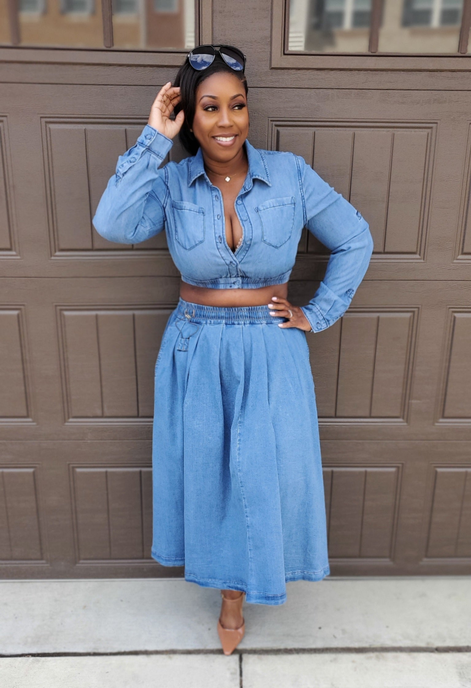 Denim Button-Up Skirt Set| Review Description & Return Policy Prior To Purchase
