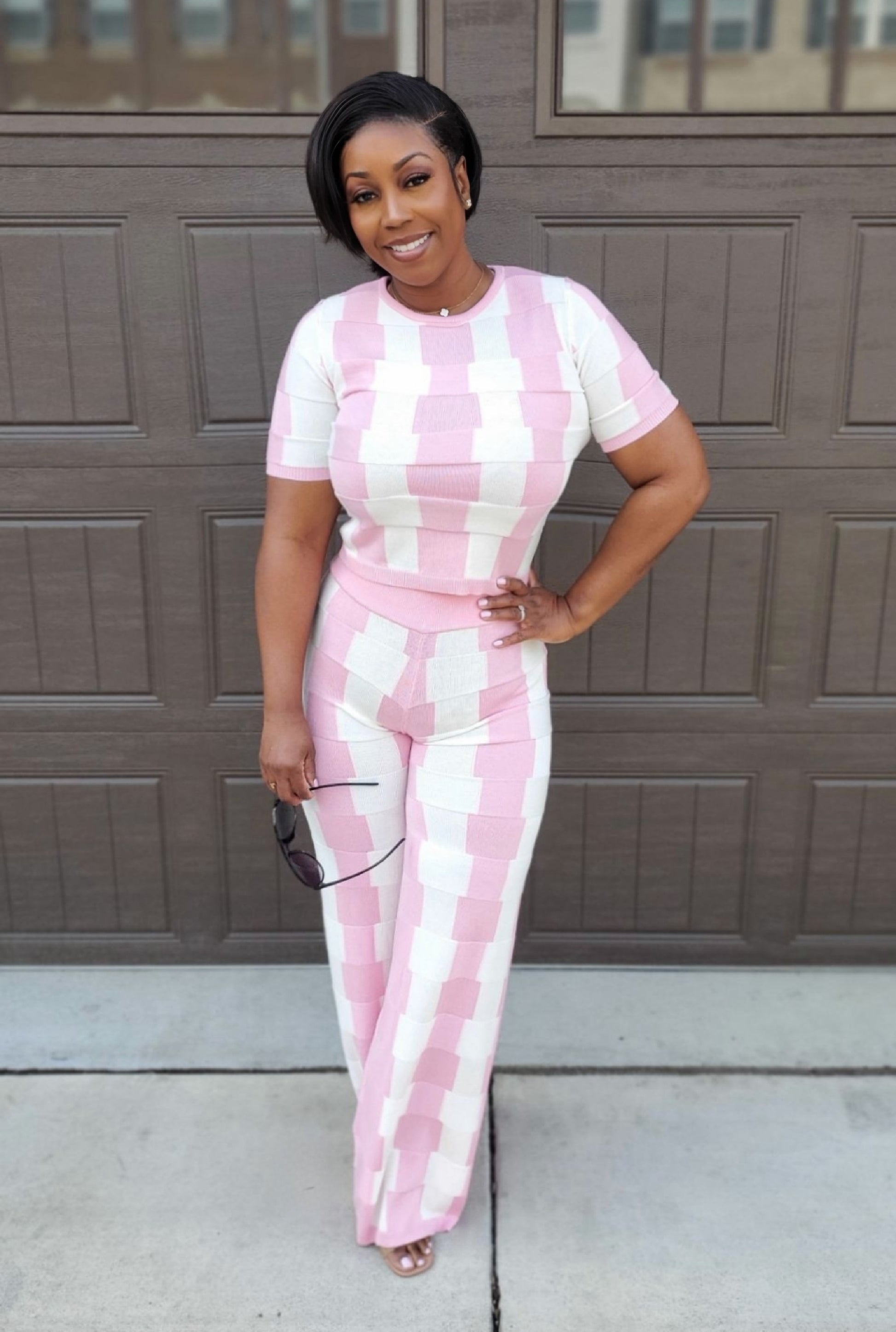Turn heads in our Geo Knit Set, a bold and stylish two-piece featuring a soft stretch knit with eye-catching block patterns. Designed with a flattering short-sleeve top and high-waisted wide-leg pants, this set effortlessly combines comfort and contour. Perfect for brunch dates, weekend outings, or casual slay days—available in blush pink and neutral mocha to match your mood. Style it with heels or sandals for that put-together look.