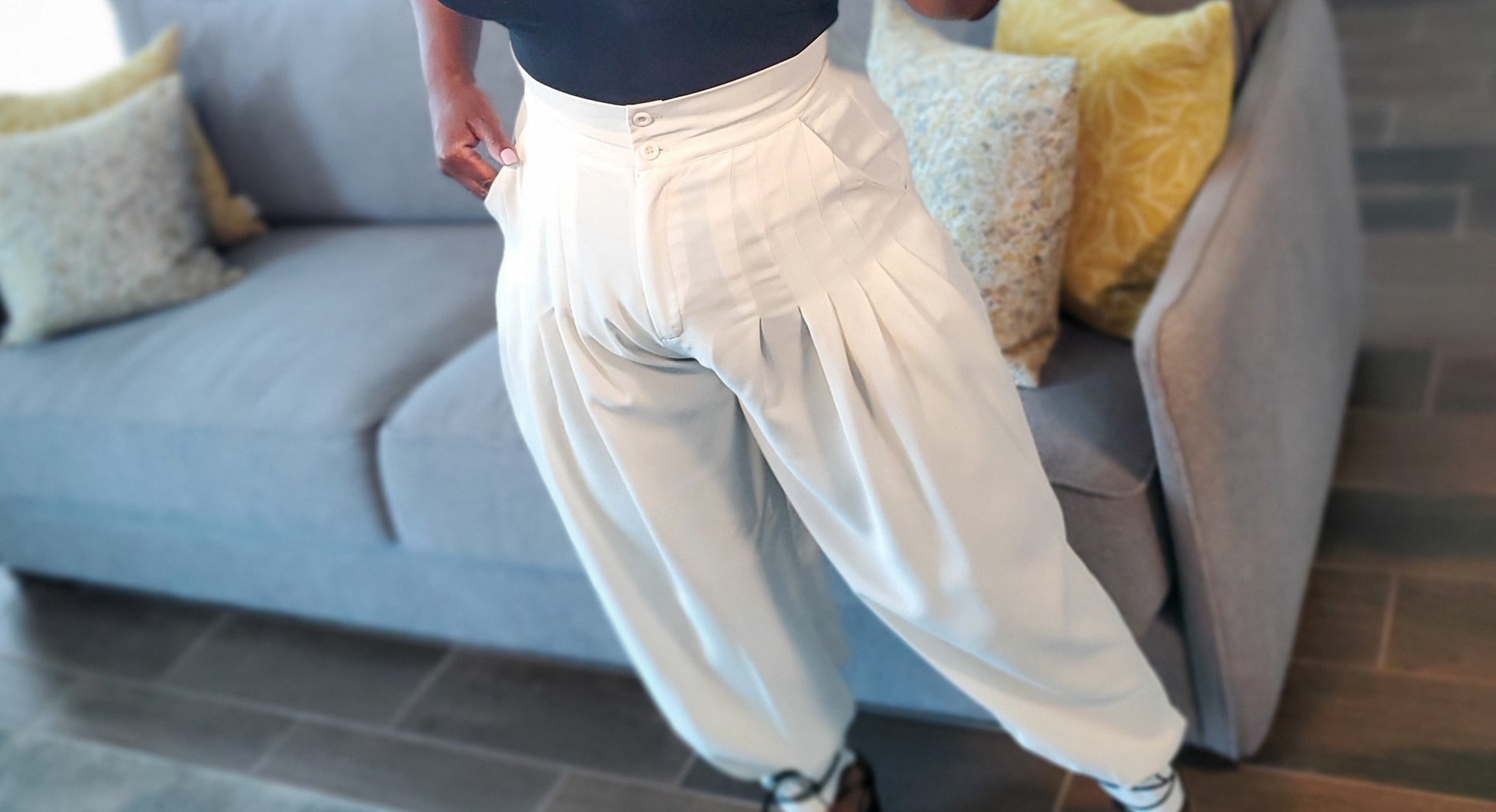 But it's at the ankles where these trousers truly come to life. Delicate buttons gather the fabric, creating a cinched effect that tapers down to your ankles.
